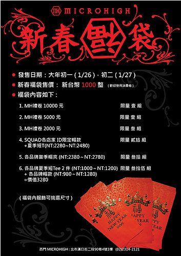 每個售價為新台幣 1000 元整, 福袋內容如下 :